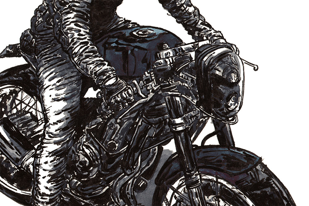 Art print of original ink and watercolour artwork of a Yamaha XSR 700 Cafe Racer.