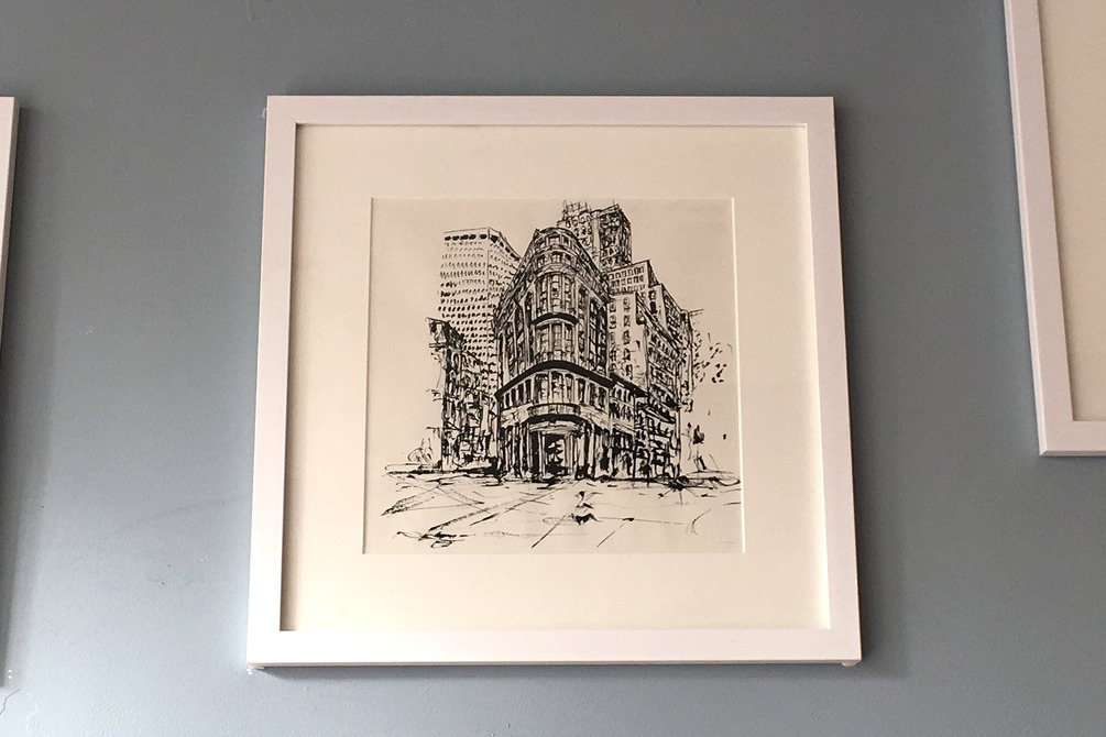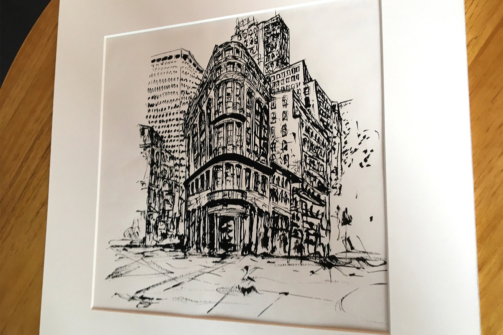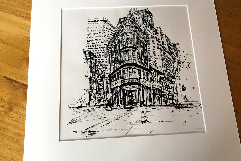 Original ink artwork of a street in London.