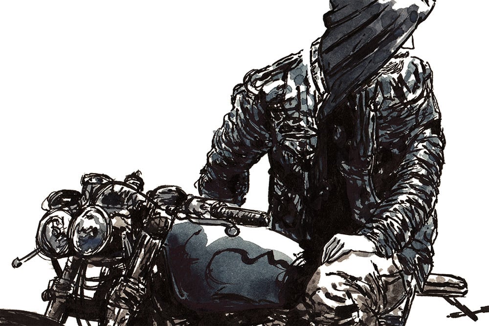 Art print of original ink and watercolour artwork of a Yamaha ZF-X4 XJR400 Cafe Racer.