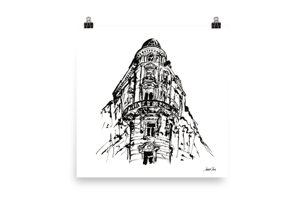 Art print of original ink artwork of a street in Vienna.