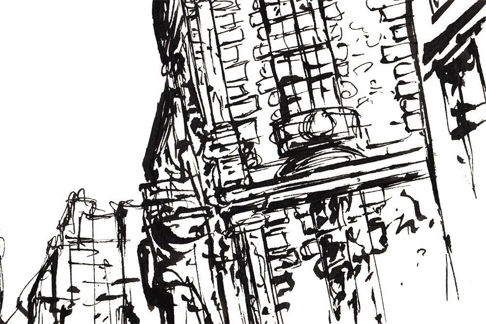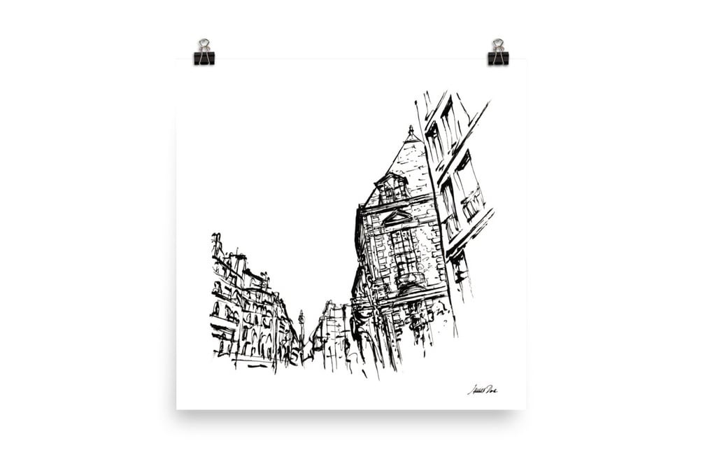 Art print of original ink artwork of a street in Paris.